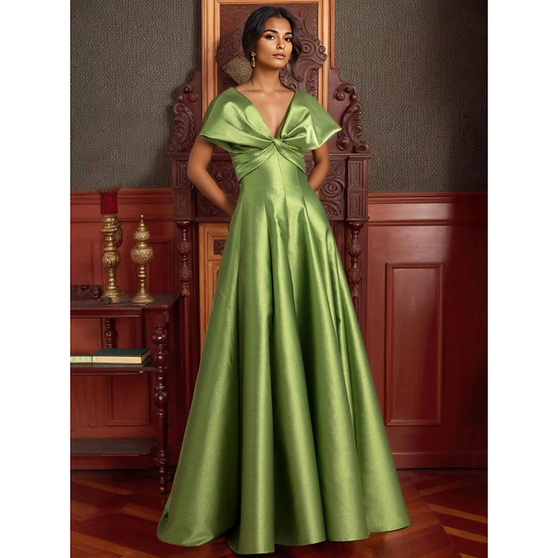 A-Line Floor Length Evening Gown Ball Gown Formal Dress Elegant Glittering High Split Half Sleeve V Neck Wedding Formal Champagne Mother Of the Bride Dress Lurex Fabric with Glitter Ruffles