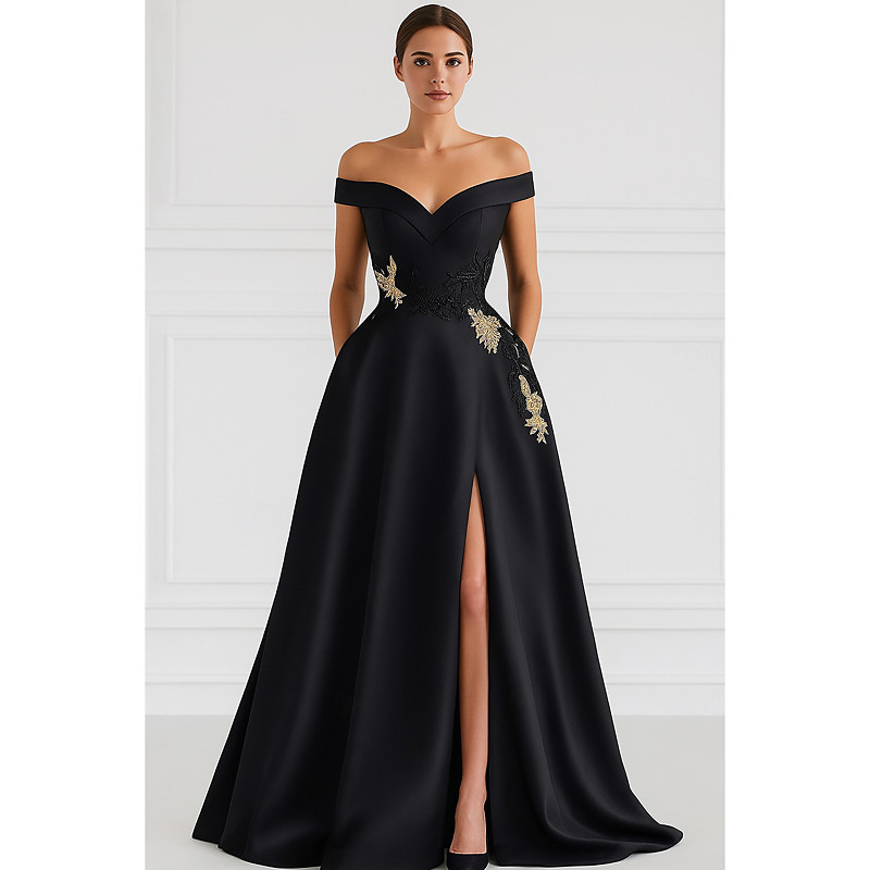 A-Line Floor Length Evening Gown Ball Gown Formal Dress Elegant Silky Short Sleeve Off Shoulder Wedding Formal Pocket Satin with Bow(s)