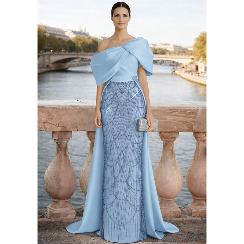A-Line Sheath Column Floor Length Beaded Eembroidered Formal Dresses Mother of the Bride Dress Evening Gown Ball Gown with Overskirt Formal Dress Elegant Glittering Sparkle Sleeveless One Shoulder