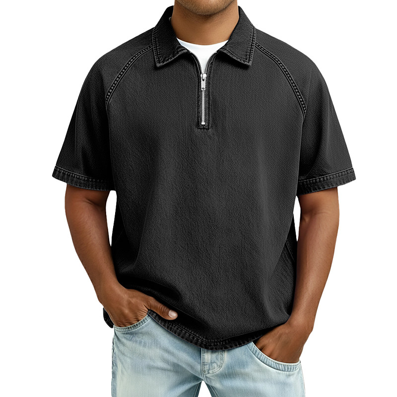 Men's Zip Polo Cotton Polo Shirt Casual Holiday Zip Lapel Short Sleeve Fashion Basic Plain Quarter Zip Summer Spring Spring Summer Relaxed Fit Light Blue Army Green Black Pink Navy Blue Purple Zip