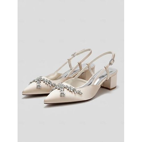 scarpe da sposa da donna in raso con tacco basso e fiocco décolleté da sposa con cinturino alla caviglia in organza e perle, eleganti e comode scarpe con tacco per la cerimonia nuziale ricezione