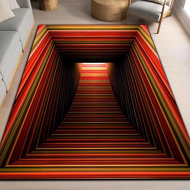 3D Optical Illusion Area Rug Bohemian Style Teal and Rust with Intricate Medallion Pattern Ideal for Cozy Living Room or Bathroom or Entryway Decor