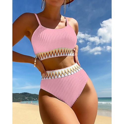 Per donna Costume da bagno Bikini a vita alta con volant Costumi da bagno Boho Elastico Senza Maniche Costume da Bagno Surf Spiaggia Vacanze Estate