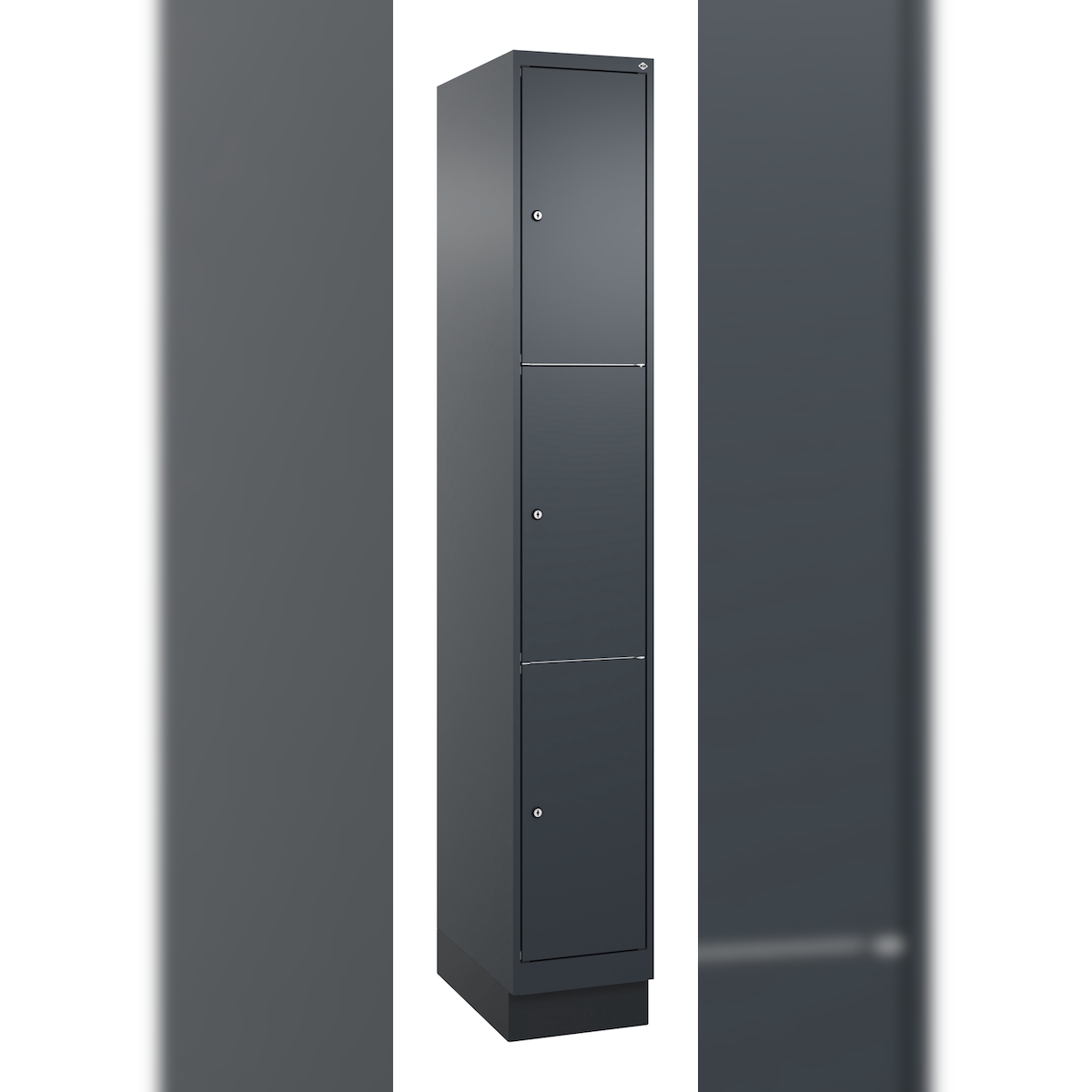 C+P Schließfachschränke Classic PLUS, Sockel, 3 Abteile, HxBxT 195x30x50cm, Zylinderschloss, Anthrazit von PROREGAL
