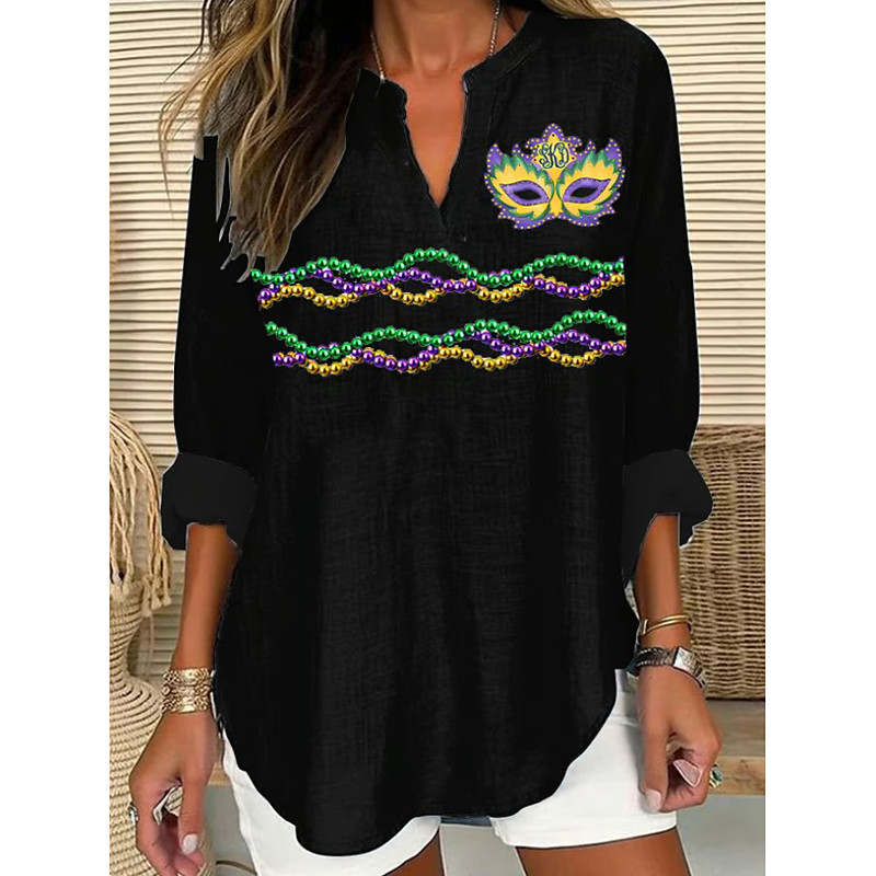 Mardi Gras Women's Shirt Graphic Vintage Daily Stylish Long Sleeve V Neck Regular Tops Daily Holiday Print Blue Black White Yellow Purple Summer Spring