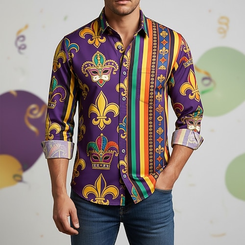 Camicia grafica da uomo per carnevale del Mardi Gras - Stile festival della parata di Fleur-de-lis