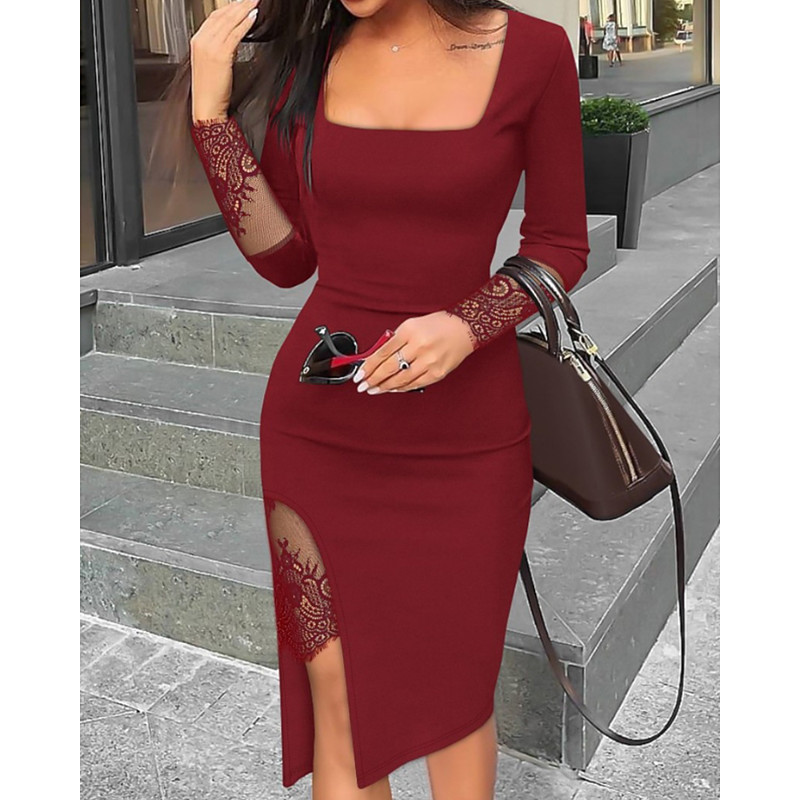 Women's Midi Dress Sequin Dress Party Dress Cocktail Dress Wrap Dress Elegant Fashion Evening Party Party Special Occasion Regular Fit Plain Long Sleeve Square Neck Blue Black Pink Wine Spring Fall