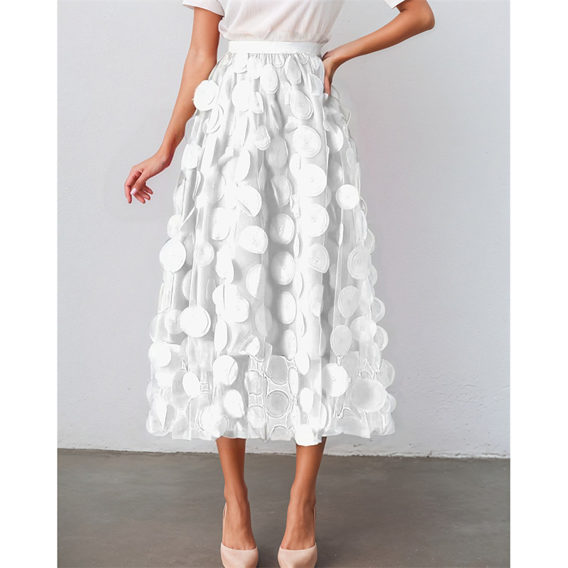 Women's Asian Size A Line Gauze Skirts Elegant Fashion Midi High Waist Skirts Solid Colored Flower Floral Tulle Micro-elastic Family Gathering Casual Daily Apricot Wine Red Black White Spring, Fall