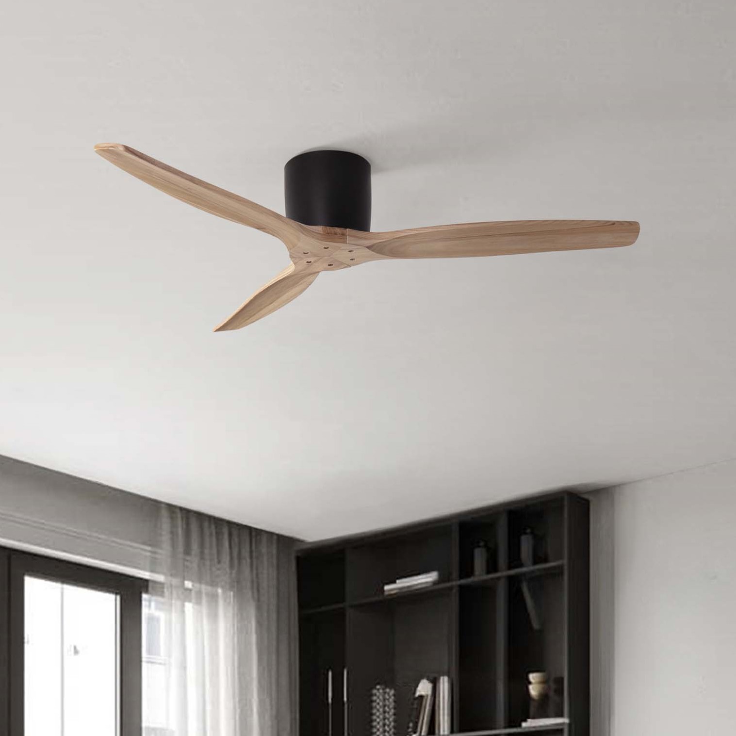 Nova Luce Ninemia - plafondventilator met afstandsbediening - Ø 132 cm - zandzwart en natuurlijk hout