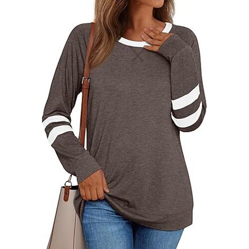 Per donna Blusa Blocco di colori Moderno Casual Manica Lunga Girocollo Top Regolari Quotidiano Ferie Patchwork Rosa cipria Nero Bianco Rosa Blu Autunno