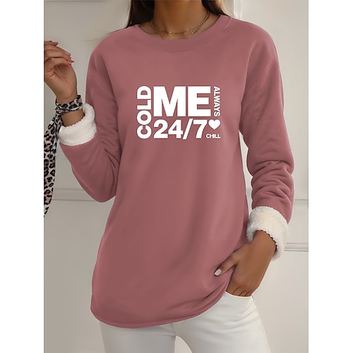 Per donna Felpa Pullover Lettera Casual Comfort Manica Lunga Girocollo Top Regolari Streetwear Abbigliamento Quotidiano Stampato Nero Giallo Rosa Rosso Blu Autunno Inverno