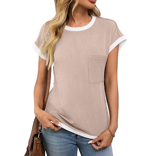 Per donna Maglietta Blocco di colori Casual Manica Corta Girocollo Top Regolari Quotidiano Uscire Patchwork Nero Bianco Rosa Rosso Bianco sporco Estate Primavera