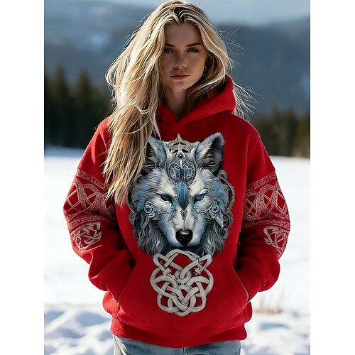 Per donna Felpa con cappuccio Grafico Animale Tribale Vintage Casual Boho Manica Lunga Con Cappuccio Top Regolari Casuale Streetwear Abbigliamento Quotidiano Stampato Tasca Frontale Blu Nero Bianco