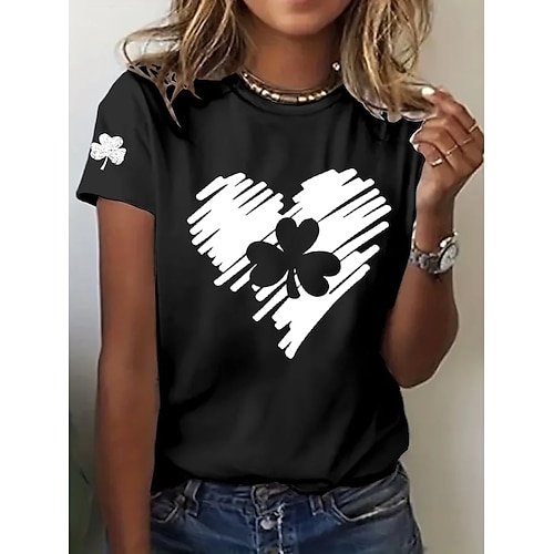 Festa di San Patrizio Per donna Maglietta Grafico Trifoglio Elegante Classico Casual Manica Corta Girocollo Top Regolari Quotidiano Stampato Nero Verde Grigio Estate Primavera