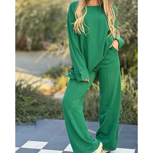 Per donna Attivo Streetwear Blusa Set di Pantaloni Manica Lunga Girocollo Tinta unica Uscire Casual Quotidiano Nero Marrone Verde Autunno Vestibilità regolare