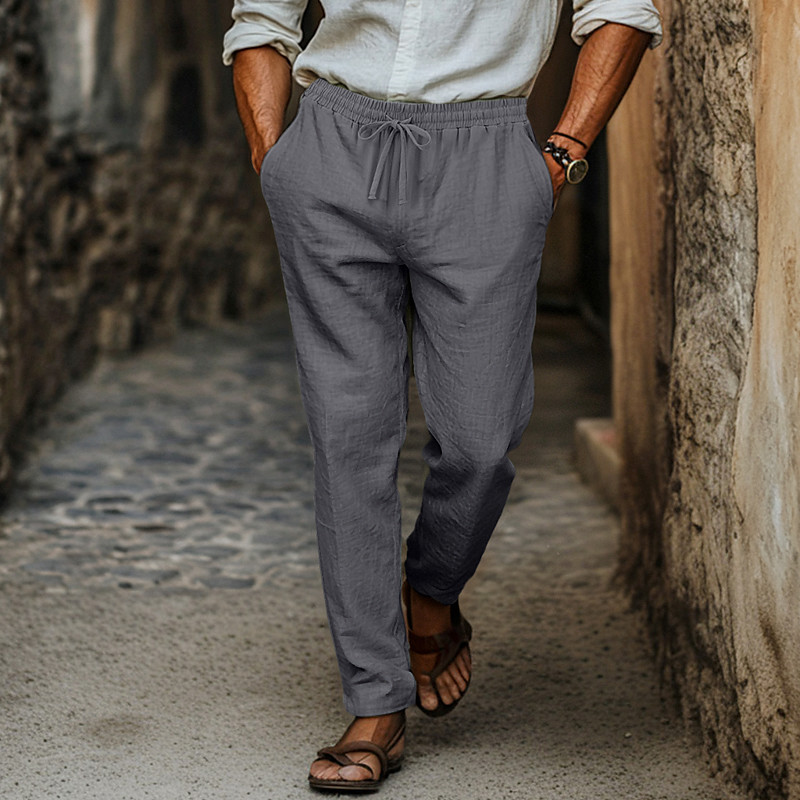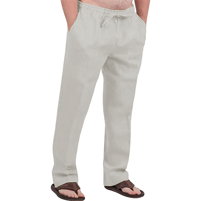 Men's Linen Pants Trousers Summer Pants Beach Pants Drawstring Elastic Waist Plain Comfort Breathable Daily Outdoor Beach Vacation Fashion Black White