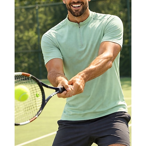 Per uomo Tinta unita Maglietta sportiva Maglia da tennis Maglietta da tennis Manica Corta Zip a un quarto Asciugatura Rapida Elastico Traspirante Tennis Da golf Pickleball Colletto Mao Maglietta Nero