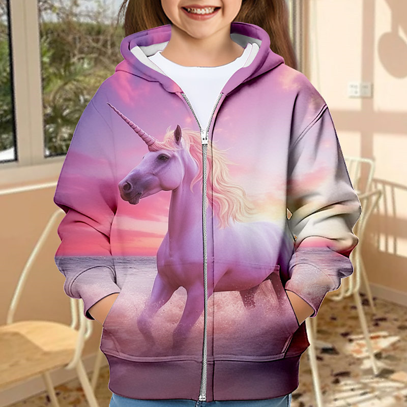 Girls' 3D Unicorn Hoodie Coat Outerwear Long Sleeve 3D Print Fall Winter Active Fashion Cute Kids 3-12 Years Outdoor Casual Daily Regular Fit