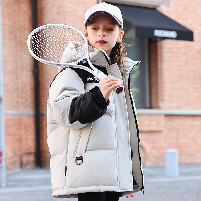 Kids Girls' Down Jacket Outdoor Jacket Puffer Jacket Solid Color Sports Pocket Keep Warm Windproof Outdoor Coat Outerwear 4-12 Years Winter Blue Black Beige
