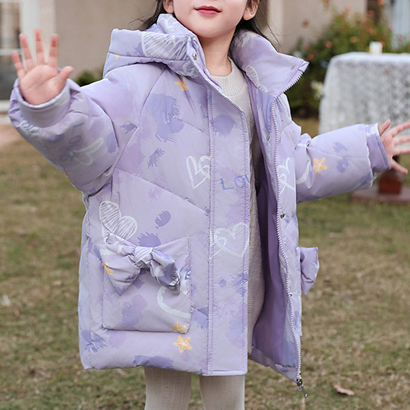 Kids Girls' Down Jacket Outdoor Jacket Puffer Jacket Heart Sports Pocket Keep Warm Windproof Outdoor Coat Outerwear 4 years Winter Pink Purple