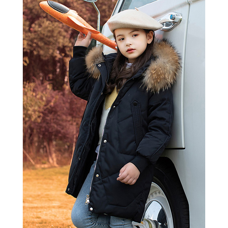 Kids Girls' Down Jacket Puffer Jacket Solid Color Sports Pocket Keep Warm Windproof Outdoor Coat Outerwear 4-12 Years Winter Black White Pink