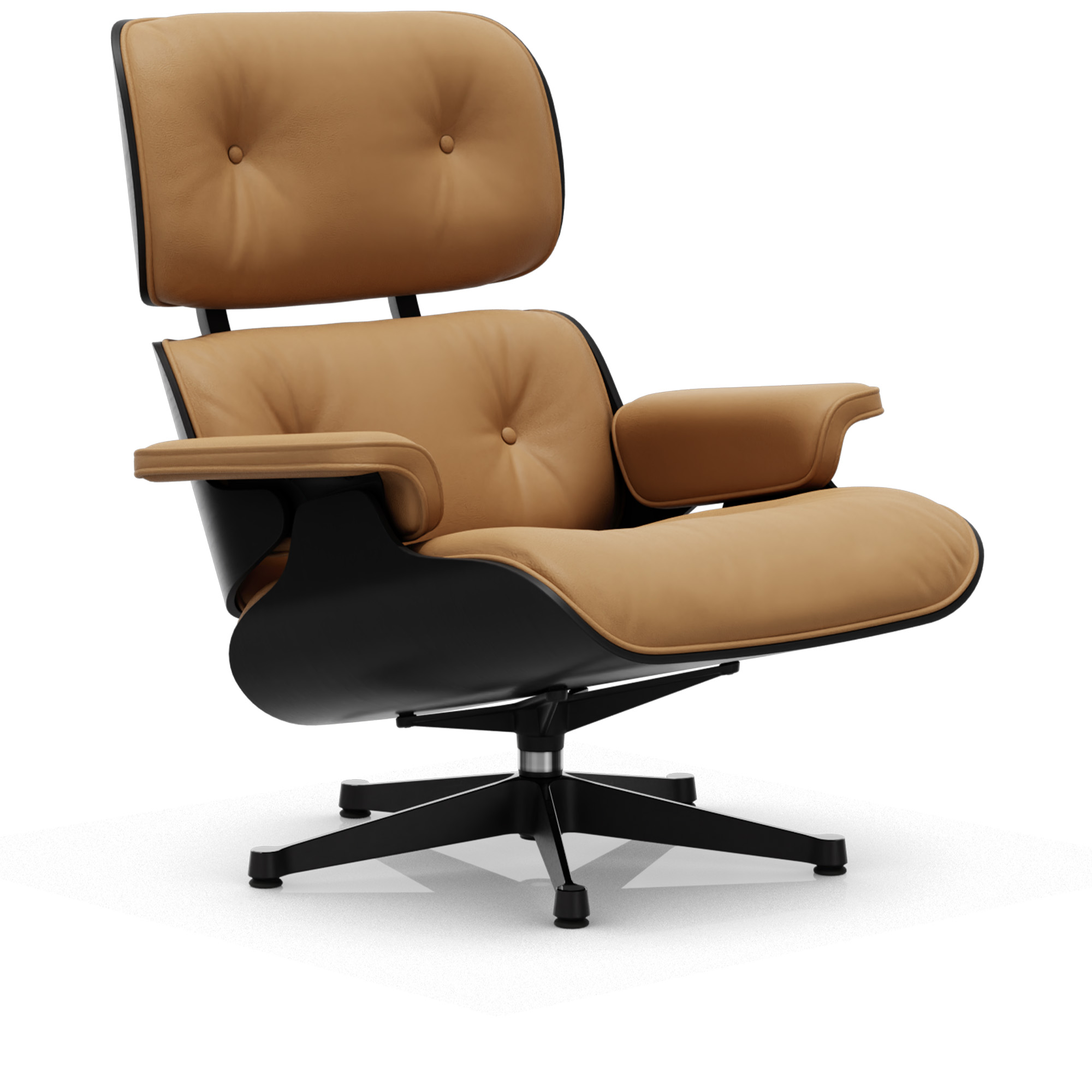 Vitra - Eames Lounge Chair Black Chestnut Leather Natural Caramel 01 Polished Aluminium/Deep Black - Fåtöljer - Charles & Ray Eames - Läder/Metall/Trä