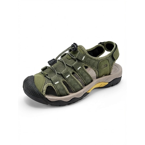 Sandali sportivi da uomo color kaki per attività all'aperto, con chiusura regolabile a strappo, punta aperta, comodi da indossare per escursionismo, vacanze al mare, viaggi, campeggio, avventure all'aria aperta e abbigliamento casual estivo quotidiano.