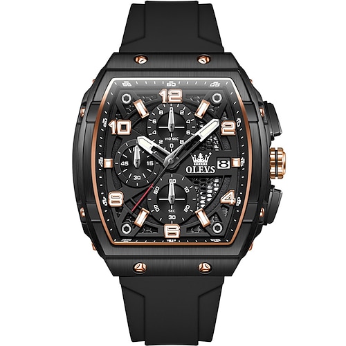 olevs 2976 orologio da uomo alla moda con cinturino in silicone tonneau cronografo orologio al quarzo impermeabile luminoso sportivo con data orologi