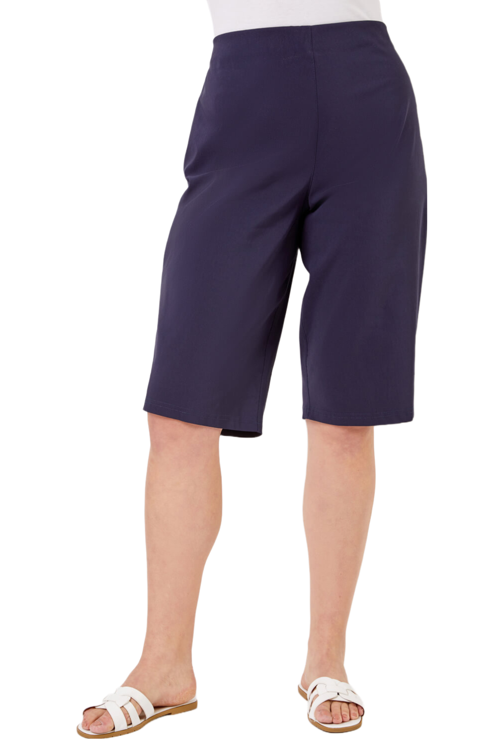 Roman Curve Womens Knee Length Elastic Waist Stretch Shorts - Navy - Size UK 22-24 | Roman Curve Sale | Discount Designer Brands
