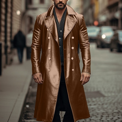 Per uomo Giacca in Ecopelle Giacca di transizione Uscire Primavera Autunno Finta pelle Giacca a Vento Capispalla Abbigliamento Tinta unica Bavero Doppiopetto