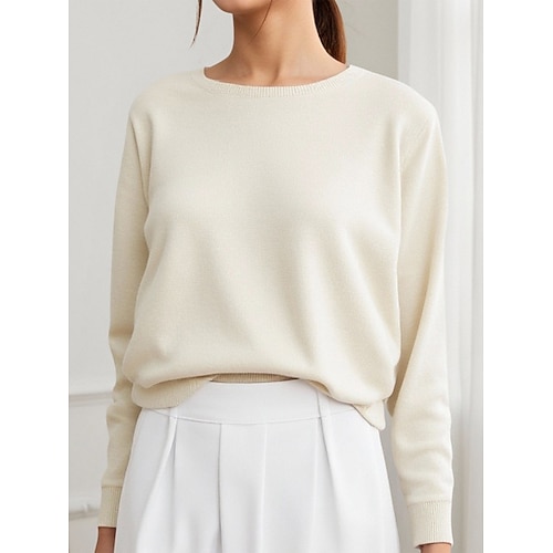Per donna Felpa Casual Morbido Tinta unica A Coste Girocollo Lavorato a maglia Manica Lunga Top Regolari Maglia All'aperto Quotidiano Weekend Nero Bianco Autunno Inverno