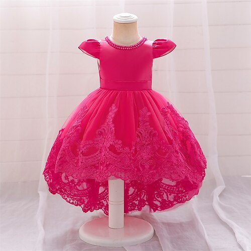 Bambini Ragazze Abito Vestito da Festa Tinta unica Senza Maniche Formale Performance Occasione speciale Pizzo Moda Quotidiano Principessa Poliestere Asimmetrico Vestito da Festa Vestito a ruota