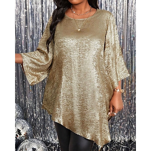 Per donna Blusa Tinta unica Vintage Elegante Casual Manica Lunga Girocollo Top Regolari Quotidiano Uscire Weekend Patchwork Asimmetrico Rosa Blu Reale Fucsia Oro Azzurro Primavera Autunno