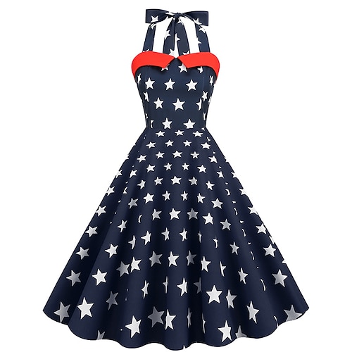 Anni 1950 Americano 250 Retrò Vintage Midi Abito Swing Top all'americana Vestito Svasato Senza maniche Stelle Costume Per donna 4 Luglio Giorno dell'Indipendenza Semiquincentenario Adulti Vestito