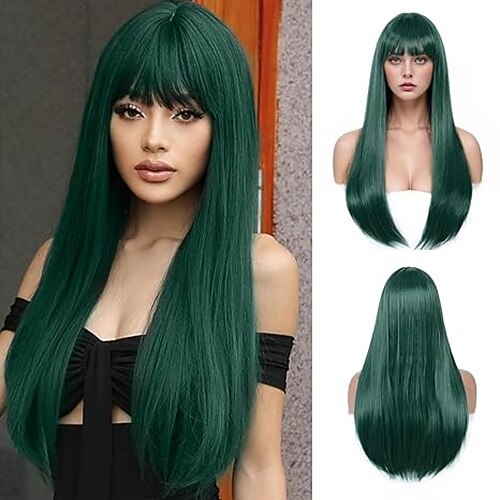 Perücke mit Pony für Frauen, lange, glatte Perücke für Mädchen, hitzebeständige, synthetische, farbige Perücke für Cosplay, für Partys, Halloween, den täglichen Gebrauch