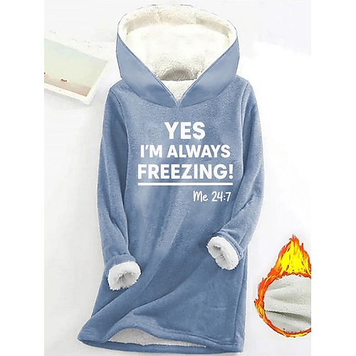 Damen Sweatshirt-Pyjama mit Fleecefutter Pullover Sweatshirt Pullover Sweatshirts Buchstabe Warm Streetwear Lässig Langarm Rundhalsausschnitt Lange Oberteile Lässig Heim Alltagskleidung Druck Blau