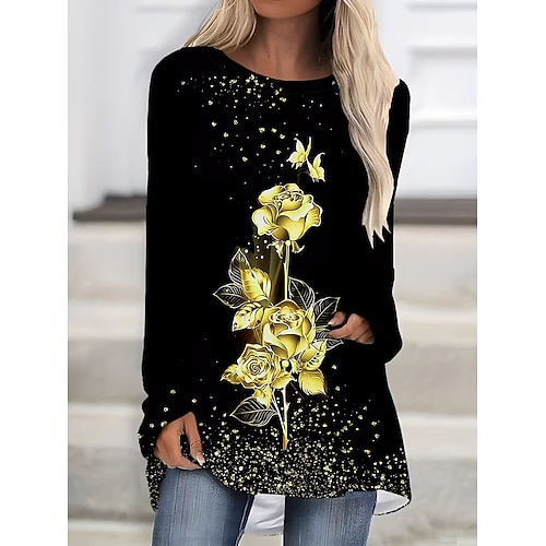 Damen T Shirt Blumen Grafik Schmetterling Vintage Stilvoll Klassisch Langarm Rundhalsausschnitt Rundhals Lange Oberteile Täglich Druck Gelb Blau Frühling Herbst