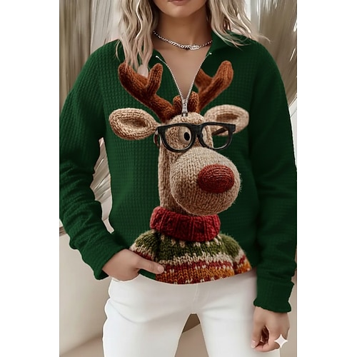 Damen Pullover Sweatshirt Grafik Tier Baum Elegant Aktiv Süß Lange Ärmel Halb Reißverschluss Reguläre Tops Alltagskleidung Lässig Sport Rot Frühling Herbst Winter
