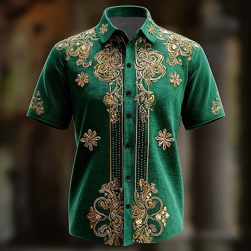 Festa di San Patrizio Per uomo Quadrifoglio Trifoglio Stampa Floreale Camicia Camicia con Bottoni Manica Corta Vintage Retrò Feste Ferie Estate Primavera Collo ripiegato Stampa 3D camicie con colletto
