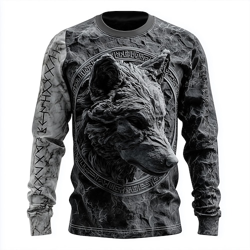 Per uomo Illusione ottica Lupo Maglietta Manica Lunga maglietta Stampa 3D Girocollo Camicia Moda Esagerato 3D Streetwear Quotidiano Nero Cachi Grigio Estate Primavera Autunno Abbigliamento S M L XL