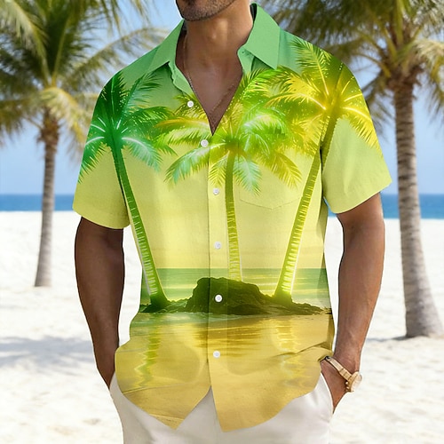 Per uomo Albero di Cocco Colore sfumato Piante Tropicali Camicia Camicie hawaiane Camicia Aloha Manica Corta Hawaiano Vacanza Ferie Estate Collo ripiegato Stampa 3D Una tasca anteriore Camicia tipo