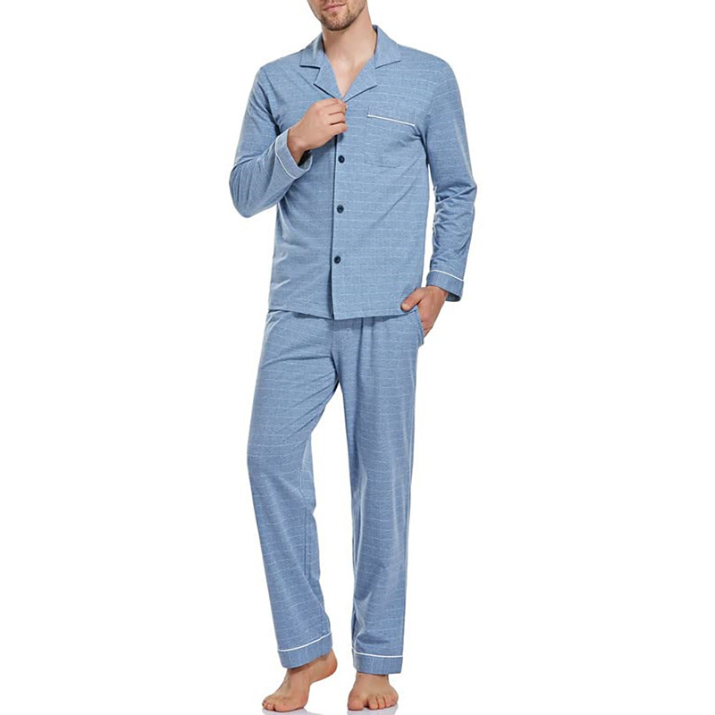 Men's Loungewear Sleepwear Pajama Set Pajama Top and Pant 2 Pieces Plaid Stylish Casual Comfort Home Daily Cotton Polyester Comfort Lapel Long Sleeve Shirt Pant Drawstring Elastic Waist Spring Fall