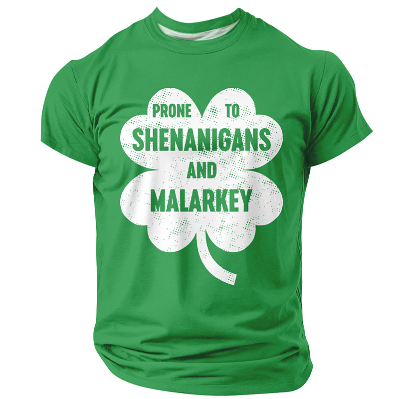 St Patricks Day Prone To Shenanigans And Malarkey T Shirt Funny Irish Clover Leaf Graphic Tee Men Lucky Green Holiday Party Top Clothing Apparel S M L XL XXL XXXL