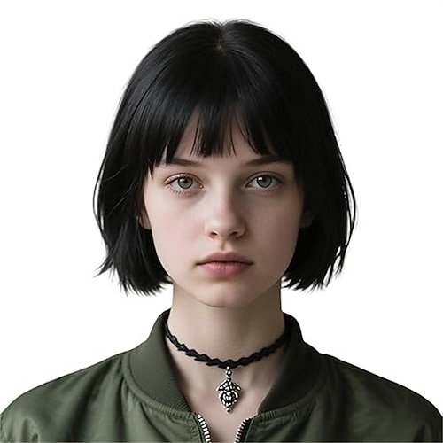blaue Bob-Perücke mit Pony, 30,5 cm, kurze, glatte Kostümperücken für Frauen, Cosplay, Party, Halloween