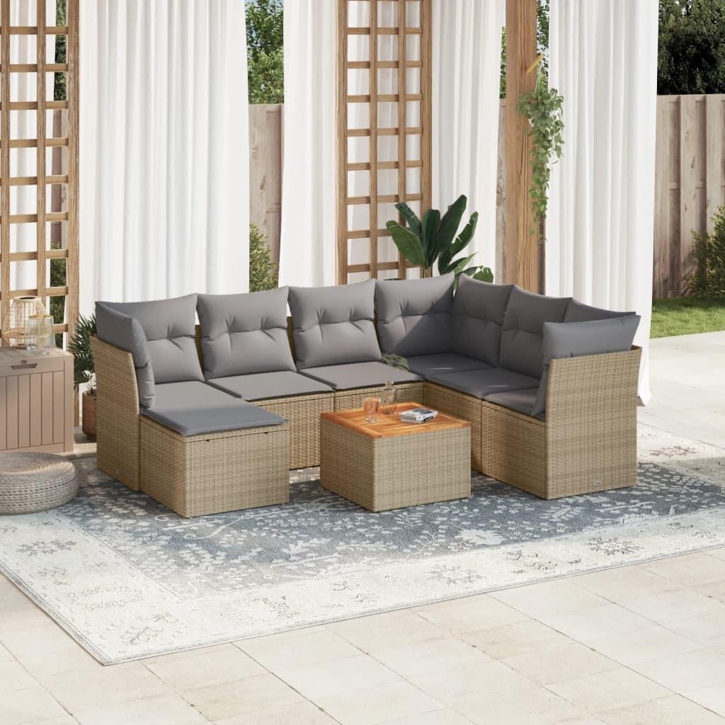 Sofasæt til haven 8 dele med hynder polyrattan beige