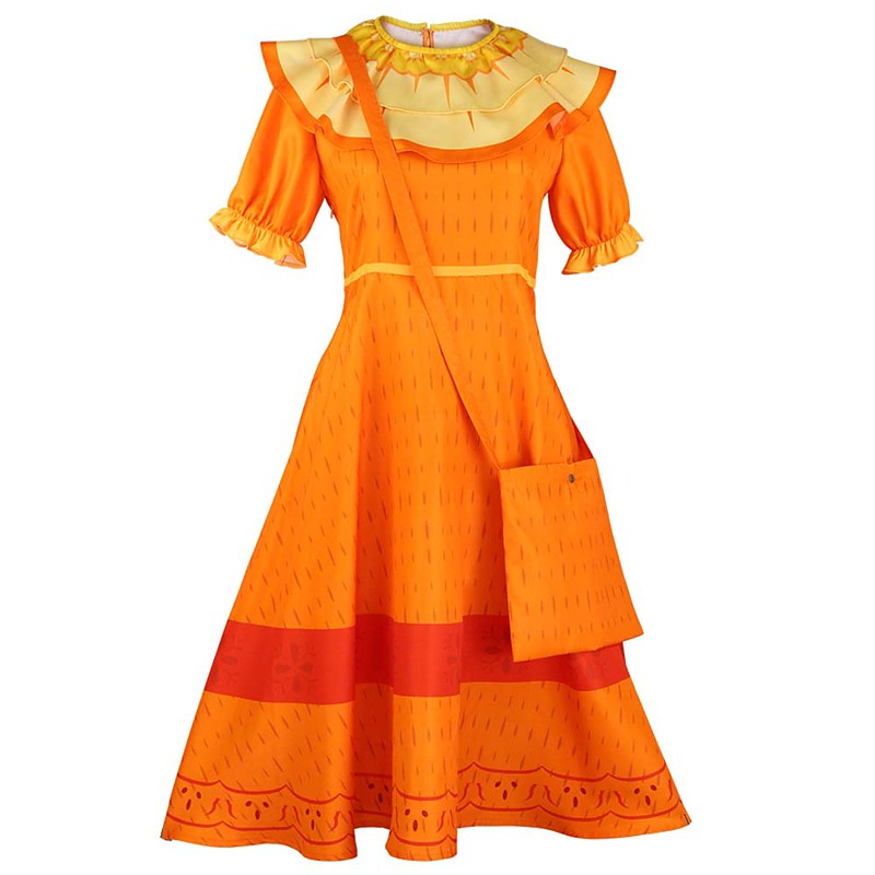 Girls' Encanto Dress with Bags Mirabel Isabela Luisa Madrigal Cosplay Costume Flower Girl Dress Vacation Dress Cute Movie Cosplay Outfit Children's Day Halloween Masquerade World Book Day Costumes