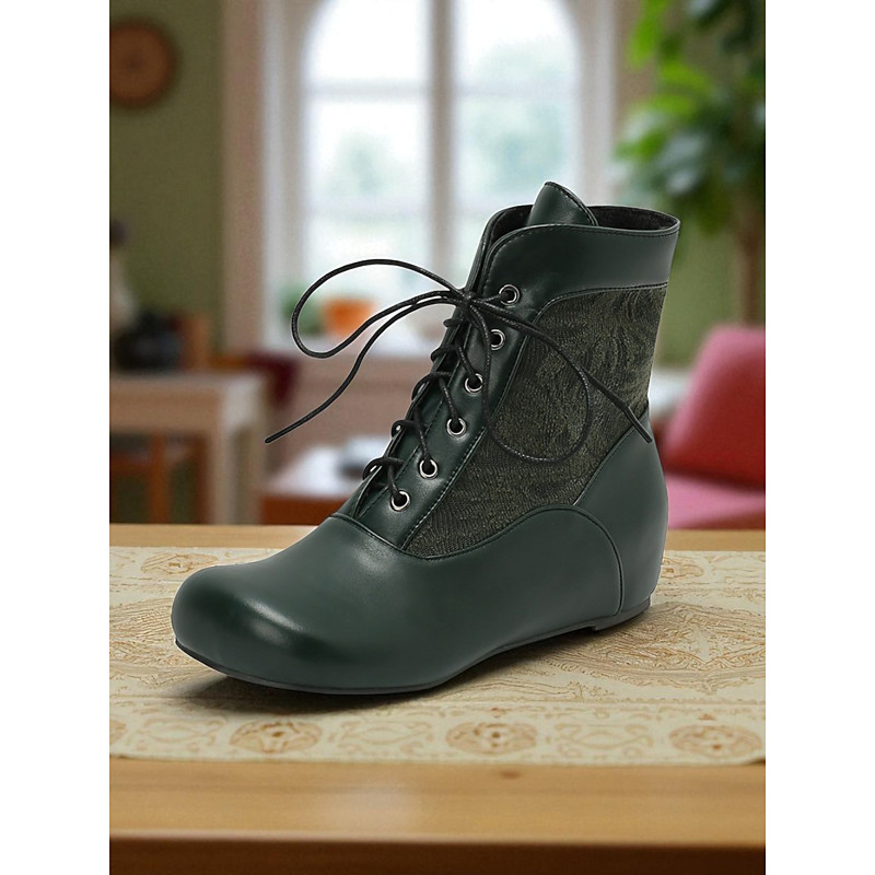 Women's Brown Faux Leather Fabric Hidden Wedge Lace-Up Ankle Boots, 1950s Vintage Shoes for Retro Outfits, Cosplay Daily Wear