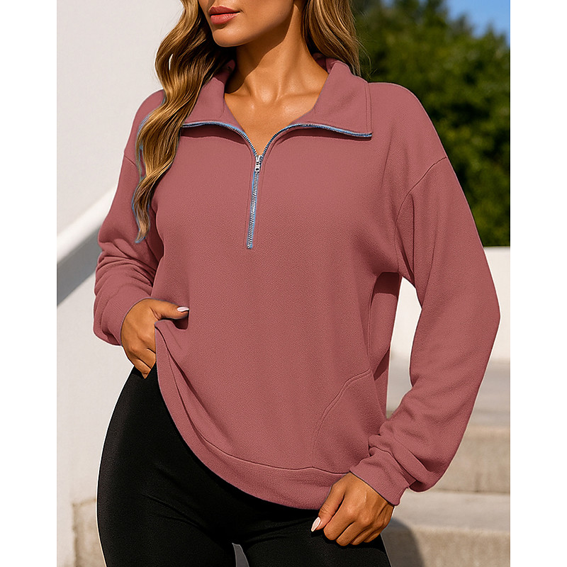 Women's Zip Up Sweatshirt Pullover Sweatshirt Long Sleeve Top Athleisure Fall Solid Colored Outdoor Travel Sports Sportswear Activewear Black White Pink
