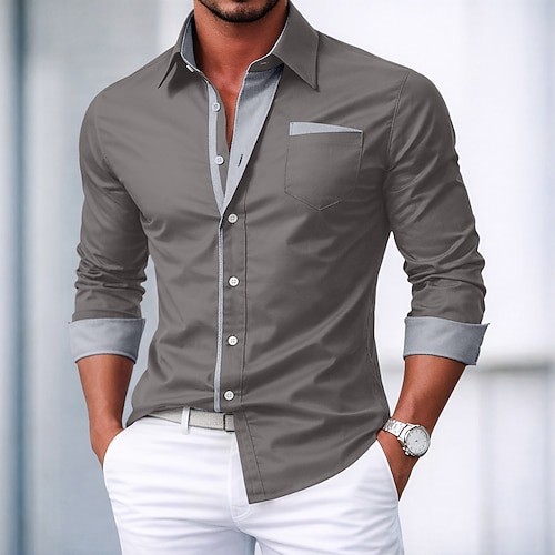 Per uomo Camicia elegante Camicia button-down Resistente alle rughe Matrimonio All'aperto Blu chiaro Nero Bianco Rosa Manica Lunga Collo ripiegato Estate Primavera Abbigliamento