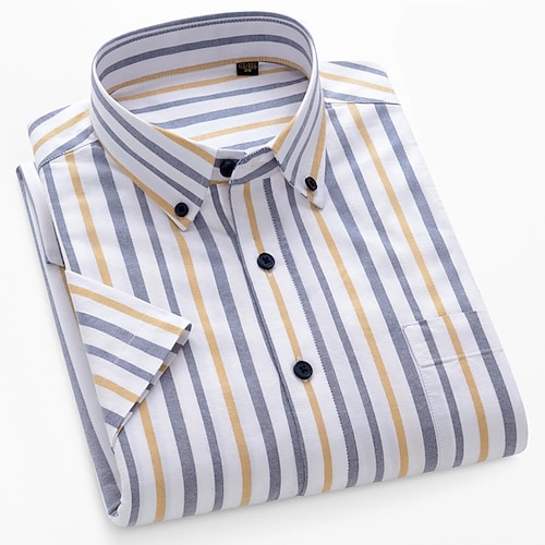 Per uomo Camicia Camicia elegante Camicia button-down Camicia Oxford Blocco di colori Casuale Quotidiano Bianco Giallo Blu marino Blu reale Manica Corta Collo ripiegato Estate Primavera Abbigliamento